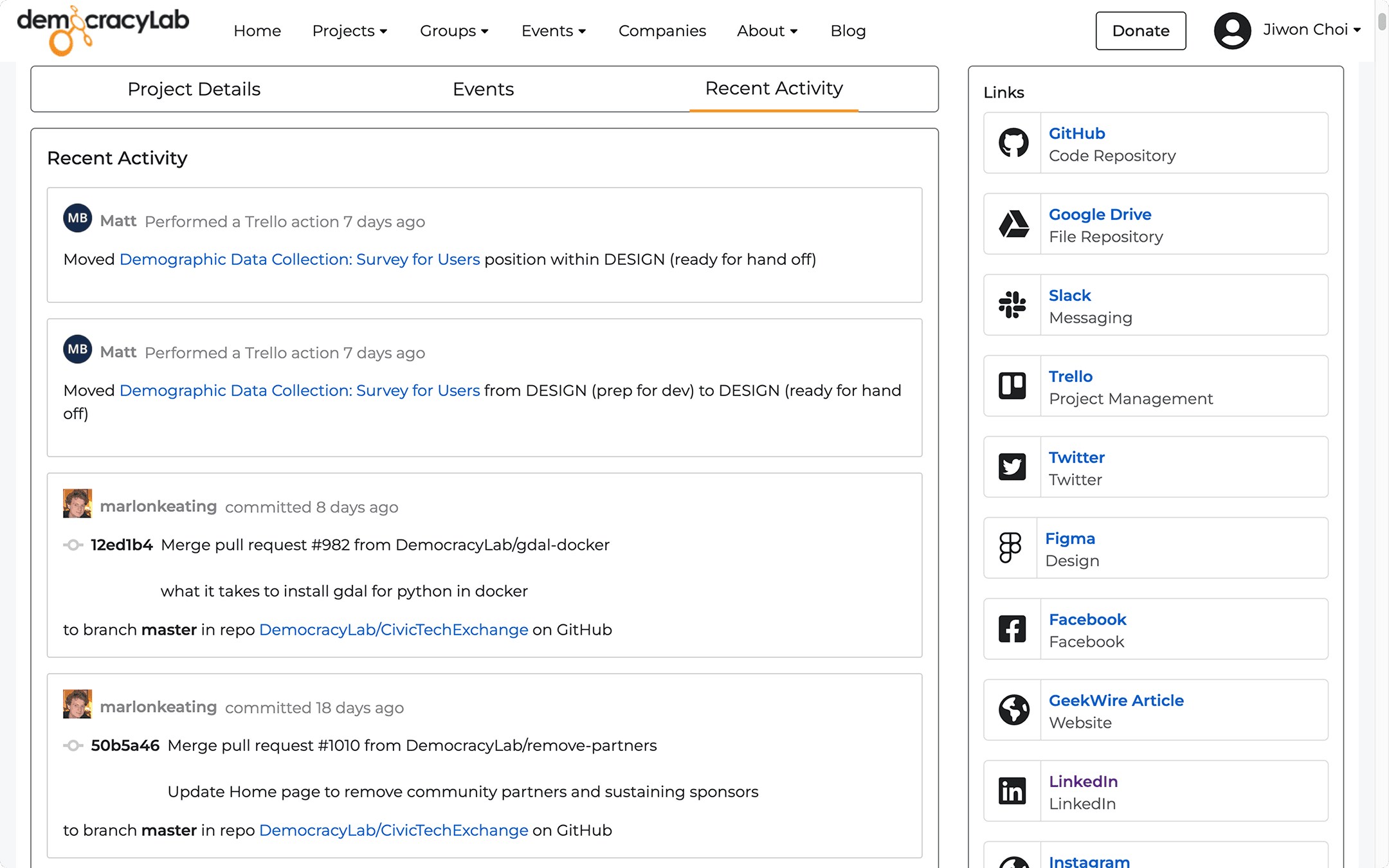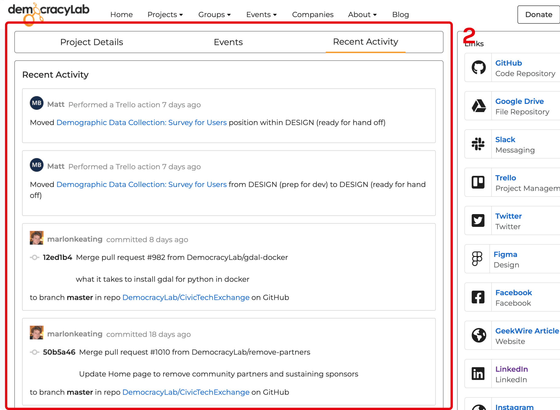 The "Recent Activity" tab only displays the recent updates without any detailed information.