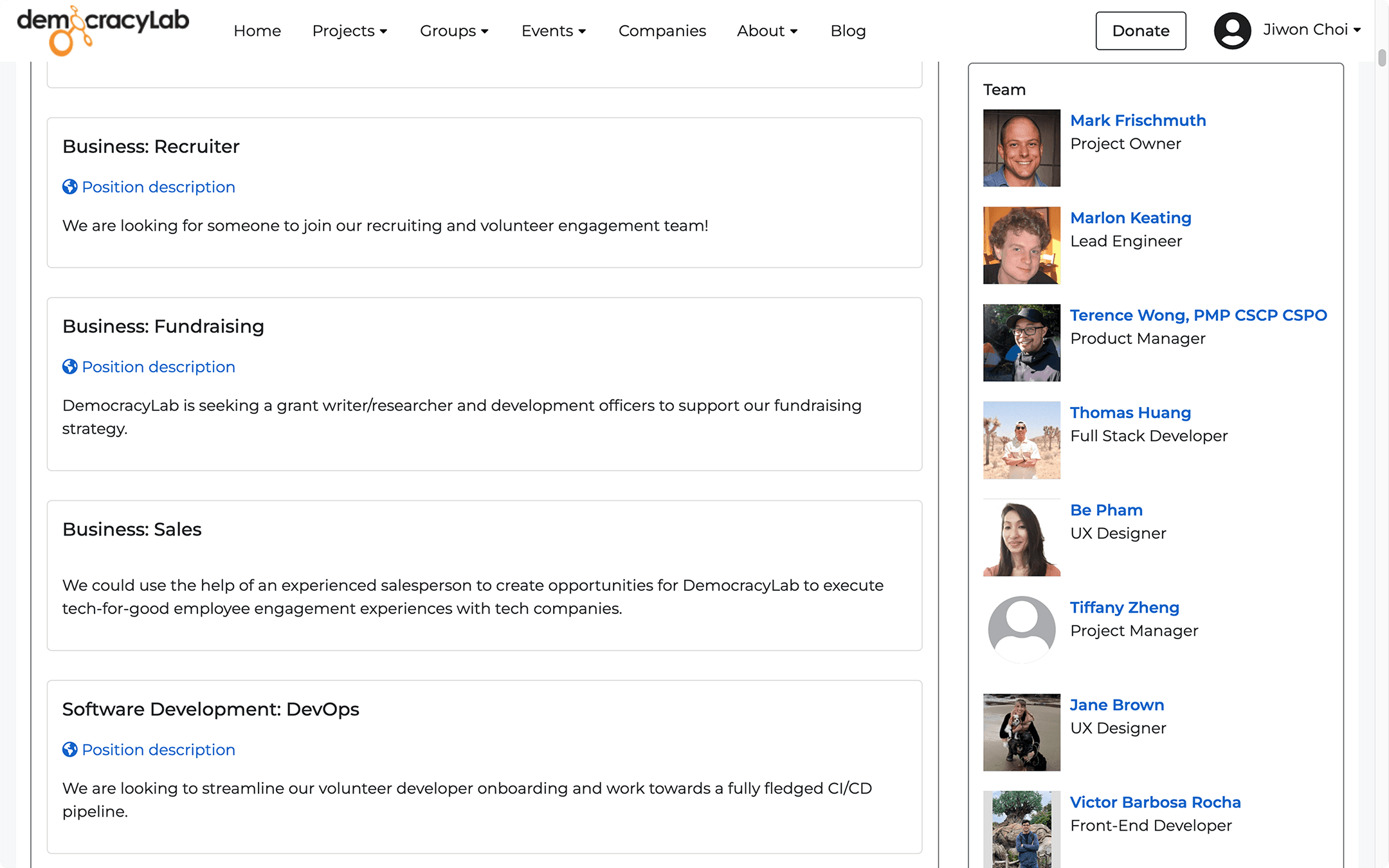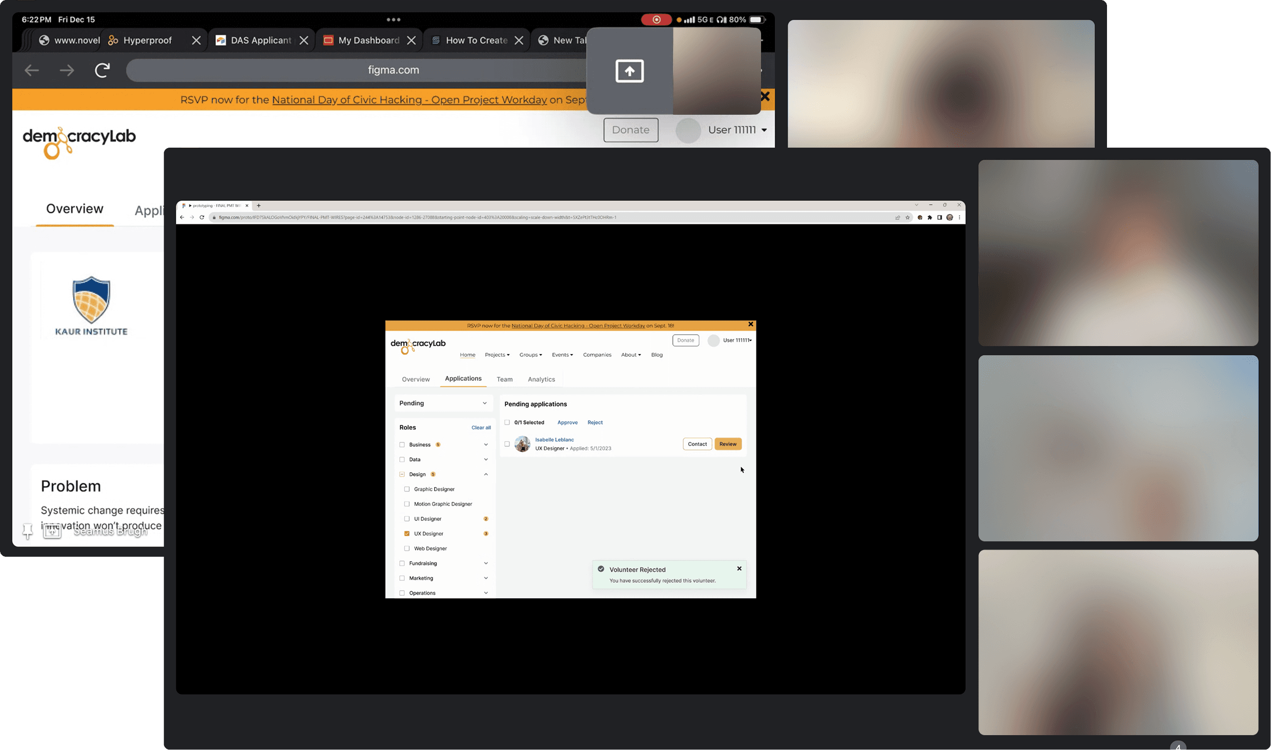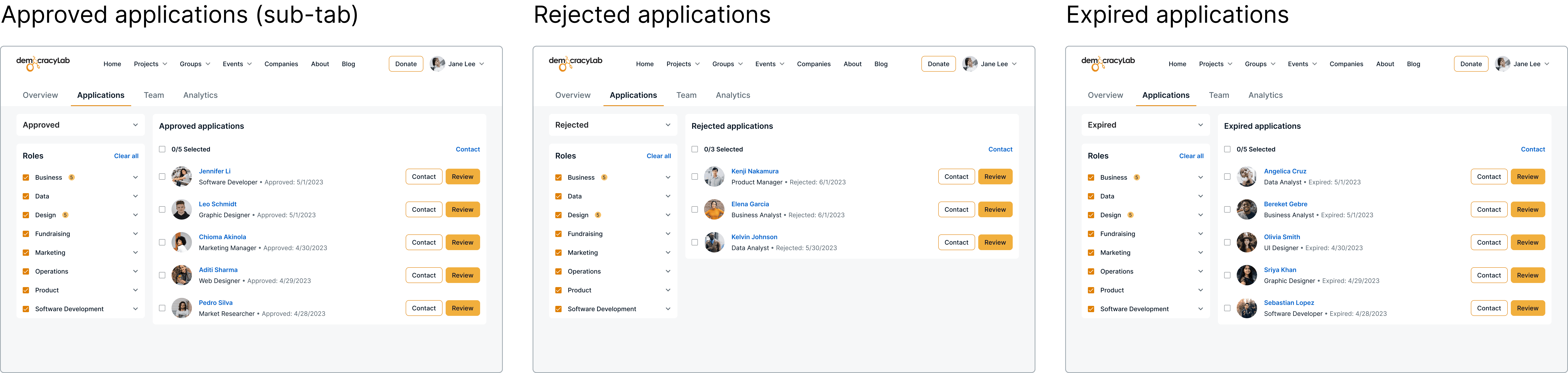 DemocracyLab is a platform that connects nonprofit organizations with skilled volunteers. As a UX Designer, I designed the Applications tab to help Project Owners (nonprofit leaders) efficiently review and manage project contributor (volunteer) applications. This tab—along with other key tabs—formed the Project Management Tool (PMT), improving usability and engagement on the platform.